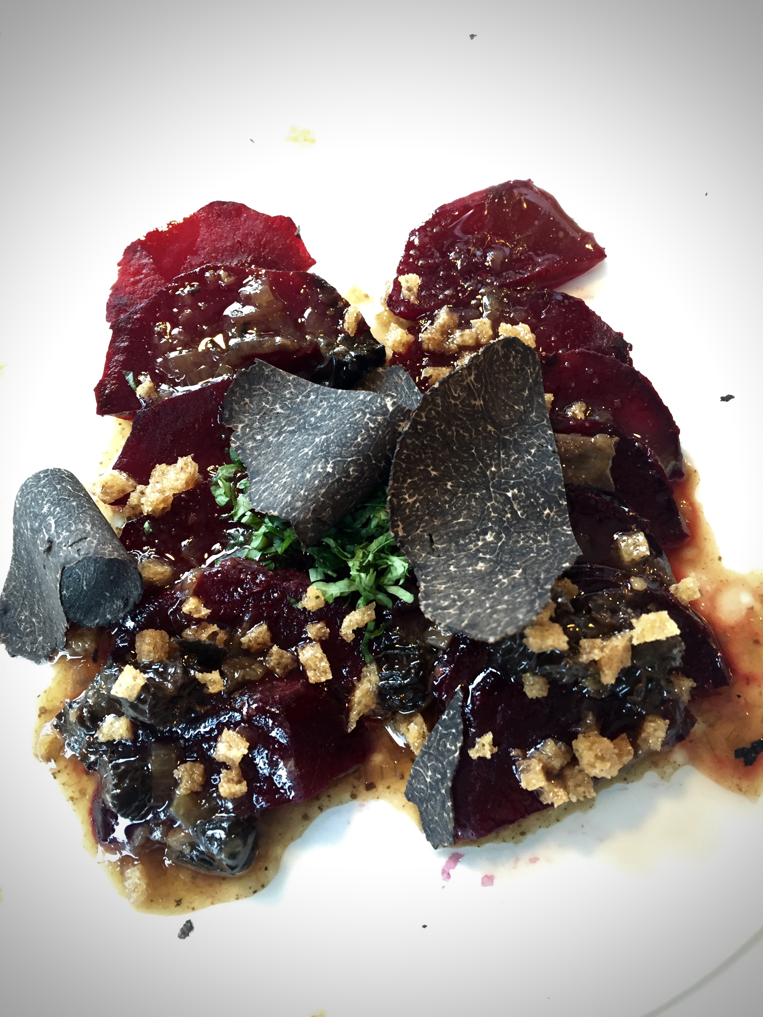This deliciously sweet beetroot was baked in clay. At the table, they cracked the casing open with a mallet and then peeled the beetroot, before slicing and serving among others with a nice shaving of truffle.