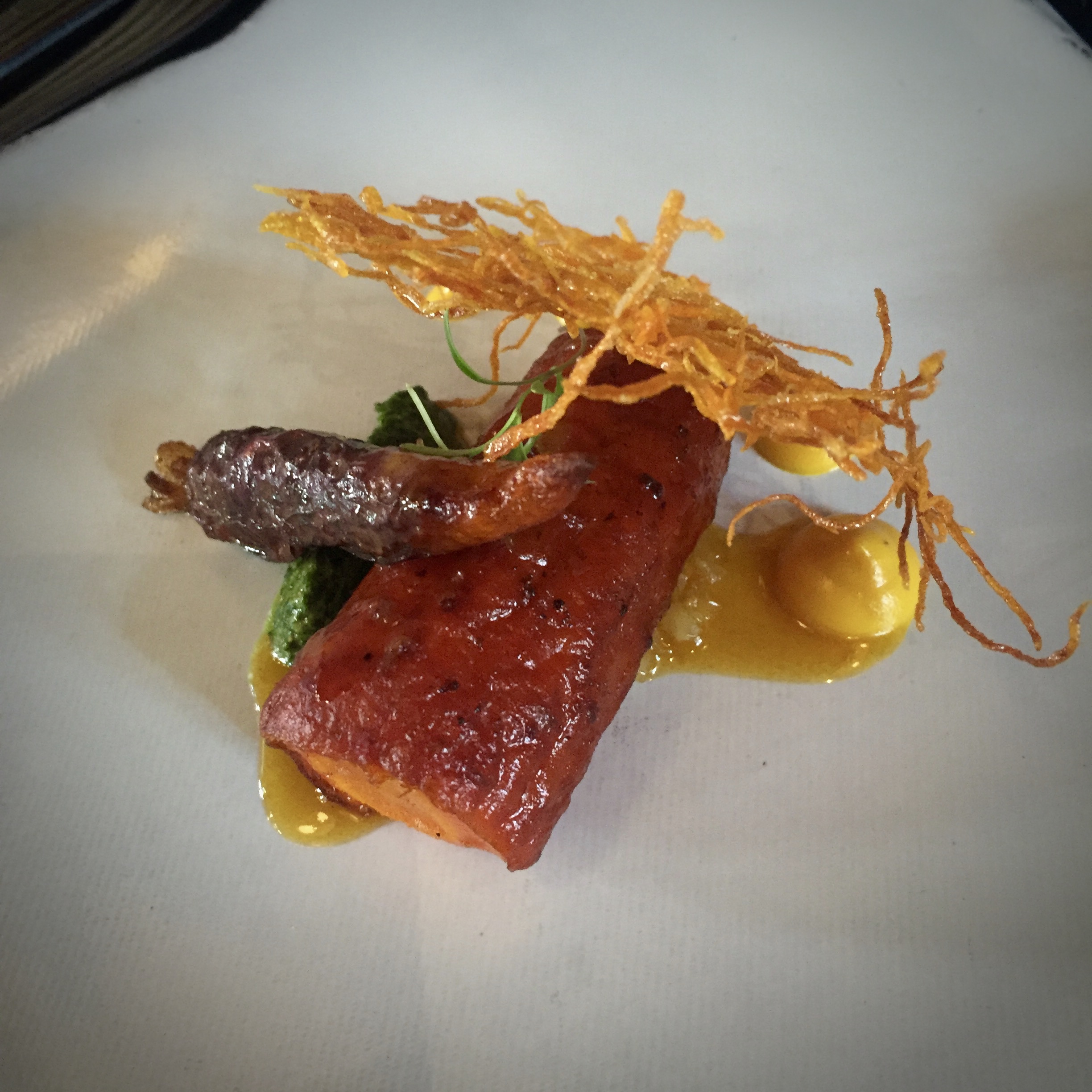 3a “Light Curry Glazed Kingklip” Carrot and cashew purée, carrot beurre noisetteLammershoek Chenin Blanc 2013 (Swartland)