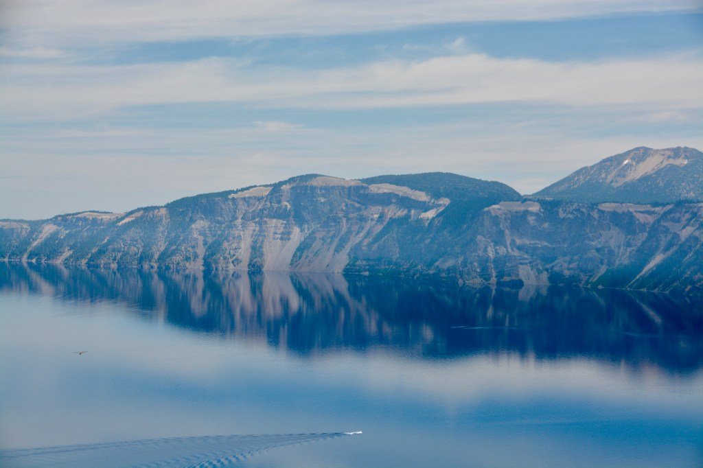 The next stop was Oregon’s only National Park. At 1,943 ft / 592 meters deep, Crater Lake is deepest in the US and one of the 3 deepest in the world. The lake was formed after Mount Mazama erupted and collapsed about 7,700 years ago. The smaller island within the crater, Wizard Island, was established in a subsequent, more minor eruption.