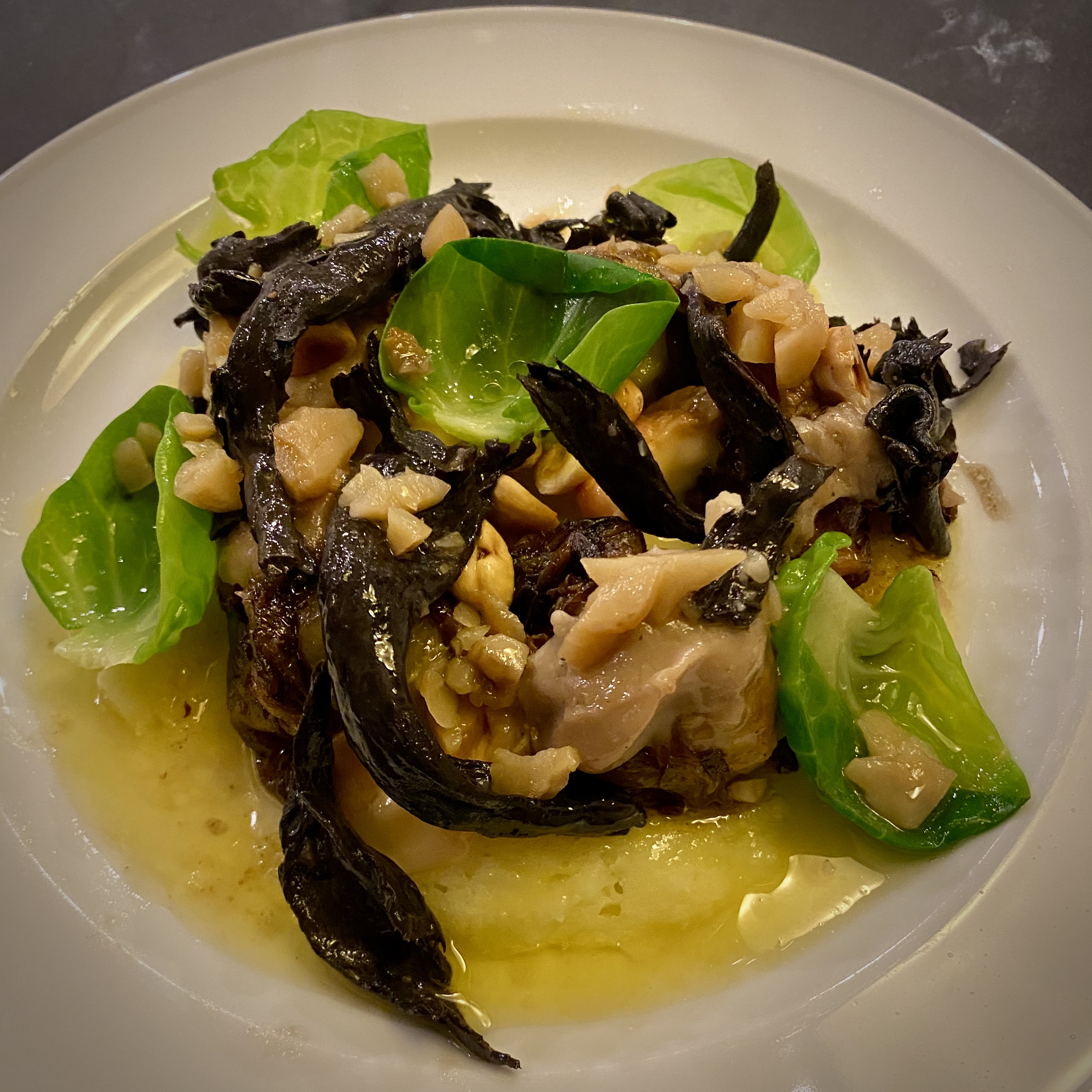Good products, ample portions, interesting taste combinations (Bergamot and Brussels Sprouts!) and use of cheese in the dishes. Relative downsides were the lentil soup (which tasted great but was very thick and the brick pastry sheets were rather greasy) and the dessert (looked beautiful, but the amaretti got soggy from the sauce and the candied orange peel was quite chewy and very bitter). Even though not everything was perfect, we were overall very pleased with the food box by De Jonge Dikkert and the wines!